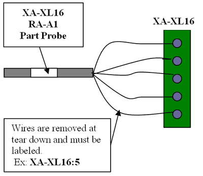 Include the plugs designation on line 1 (XA-XL16). The function group and device designation (RA-A1) is included on line 2 facilitating wiring. Description text should be added to lines 3 and 4 of the wire tag as needed. All individual wires must be labeled. Ex:XA-XL16:5